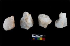 | Description / विवरण | Specimen of a cores, with several broad fluted marks from almost all the sides indicating the detached blades from it. |