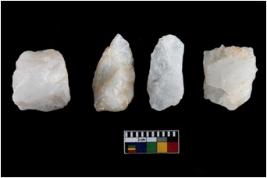 | Description / विवरण | Specimen of a cores, with several broad fluted marks from almost all the sides indicating the detached blades from it. |