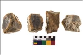 | Description / विवरण | Specimen of four worked utilised cores showing impressions of blades removed from almost all the sides. |