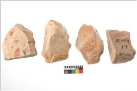 | Description / विवरण | Four flakes; most of them are tapering at one end with few having sharp edges. |