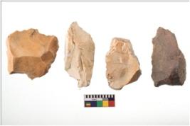 | Description / विवरण | Four flakes; most of them are tapering at one end with few having sharp edges. |