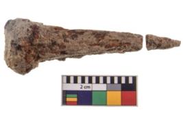 | Description / विवरण | A broken fragment of a nail. It is highly corroded. |