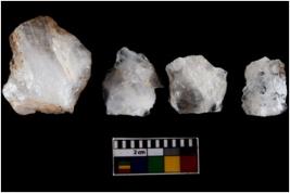 | Description / विवरण | There are n-4 of intact flake cores made up of Quartz. Some of them have bulge of percussion and some are flat flakes. |