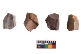 | Description / विवरण | Four utilised worked cores with sharp edges. Flakes removed from almost all the sides. Some are tapering at one end. |