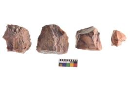 | Description / विवरण | Four utilised worked cores with sharp edges. Flakes removed from almost all the sides. Some are tapering at one end. |