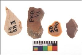| Description / विवरण | Four flakes; most of them are tapering at one end with few having sharp edges. |