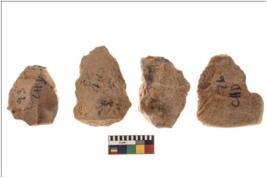 | Description / विवरण | Specimen of four worked utilised flakes with sharp edges. |