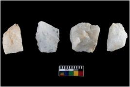 | Description / विवरण | Specimen of a cores, with several broad fluted marks from almost all the sides indicating the detached blades from it. |