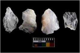 | Description / विवरण | There are n-4 of intact flake cores made up of Quartz. Some of them have bulge of percussion and some are flat flakes. |