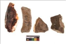 | Description / विवरण | Specimen of four worked utilised flakes with sharp edges. |
