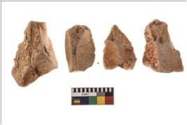 | Description / विवरण | Specimen of four worked utilised flakes with sharp edges. |