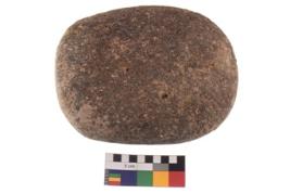 | Description / विवरण | A complete specimen of an oval shaped muller. It has battered surface along with curved ridges and oval section. |