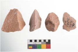 | Description / विवरण | A specimen of flake tool with prominent flaking marks. It made up of a short flakes with sides trimmed. It is rectangular in shaped |