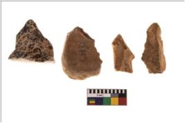 | Description / विवरण | Specimen of four worked utilised flakes with sharp edges. |