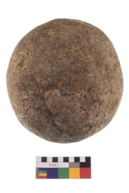 | Description / विवरण | A complete specimen of a roughly round shaped hammerstone wth battered periphery along with the circumference. |