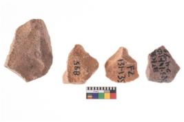 | Description / विवरण | A specimen of flake tool with prominent flaking marks. It made up of a short flakes with sides trimmed. It is rectangular in shaped. |