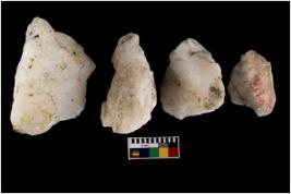 | Description / विवरण | Specimen of a cores with few broad fluted marks. Some are pointed at one end. |