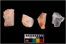 | Description / विवरण | Four worked utilised flakes with sharp edges. Some of them are tapering at one end. |