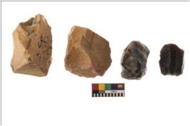 | Description / विवरण | Specimen of fluted cores showing impressions of blades removed from almost all the sides. |