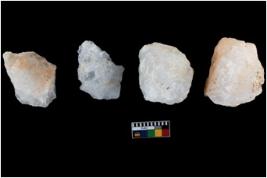| Description / विवरण | Specimen of a cores, with several broad fluted marks from almost all the sides indicating the detached blades from it. |