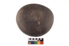 | Description / विवरण | A complete specimen of an oval shaped muller. It has battered surface along with curved ridges and oval section. |