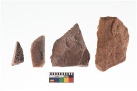 | Description / विवरण | A rectangular flake with wavy thick distal end and broken functional top. It reined pebbly cortex on one side and irregular thin edge on the other. |