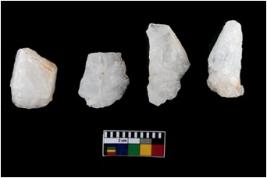 | Description / विवरण | Specimen of a cores, with several broad fluted marks from almost all the sides indicating the detached blades from it. |