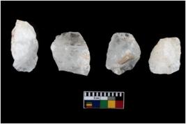 | Description / विवरण | Specimen of a cores, with several broad fluted marks from almost all the sides indicating the detached blades from it. |
