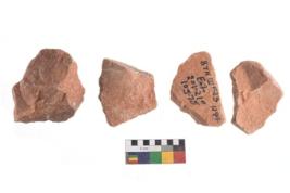| Description / विवरण | A specimen of flake tool with prominent flaking marks. It made up of a short flakes with sides trimmed. It is rectangular in shaped |