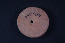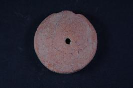 Circular wheel has plain surface, a hole is there on the centre, it is slightly damaged on edges as well as surface has got scratch marks.