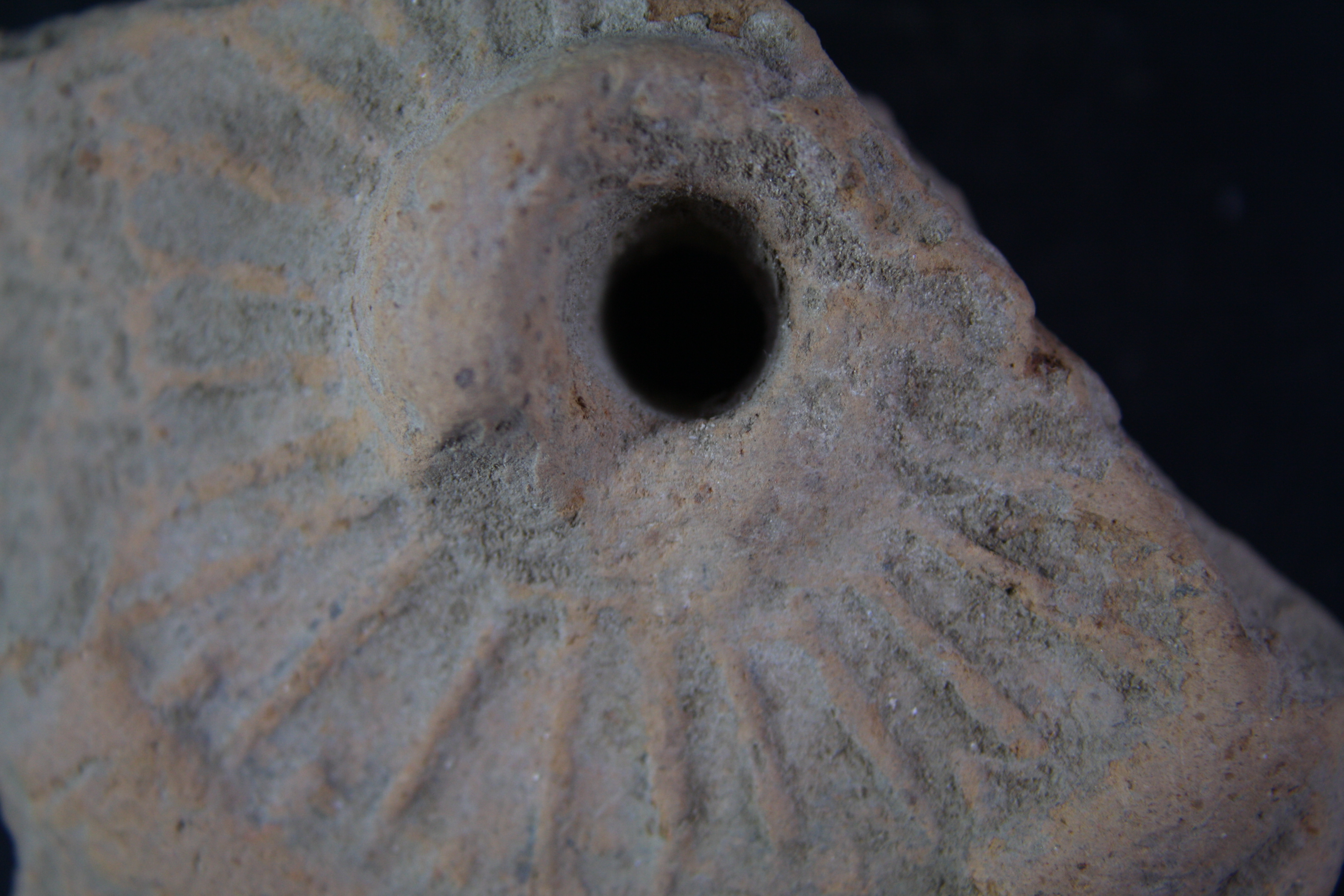 Broken fragment of a wheel, a hole is given at centre.