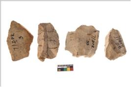 | Description / विवरण | Four worked flakes, some of them are irregular in shape whereas some are tapering at one end. |