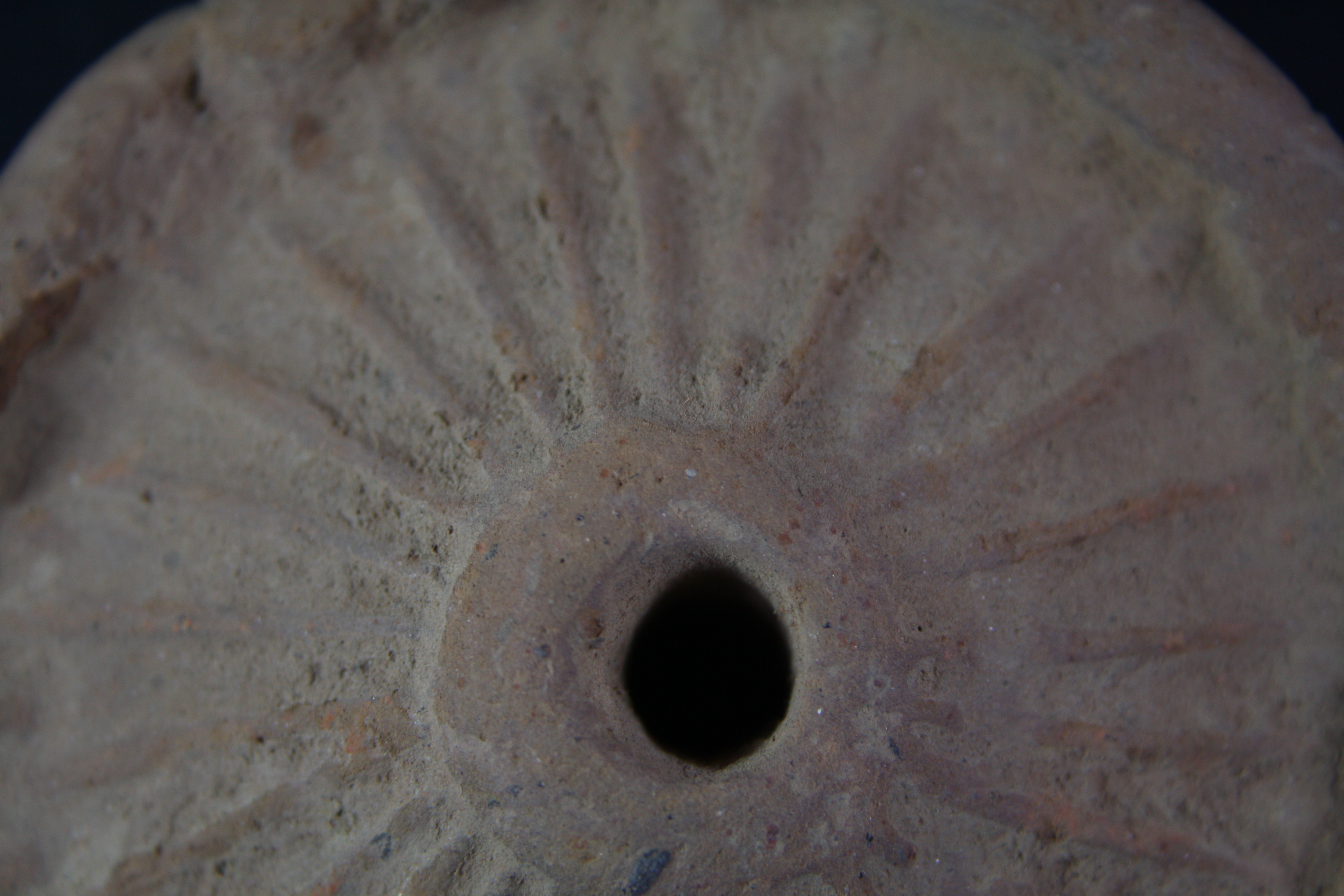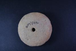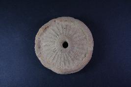 Circular wheel is damaged on edges, a hole can be seen at centre.