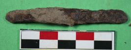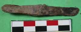 | Description / विवरण | A long bladed chisel with bevelled cutting edge. Its colour is brown with incrusted rough surface. |