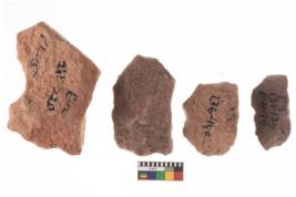 | Description / विवरण | A rectangular flake with wavy thick distal end and broken functional top. It reined pebbly cortex on one side and irregular thin edge on the other. |