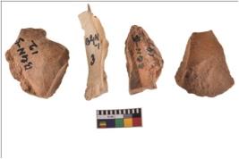 | Description / विवरण | Four worked utilised flakes. They are uneven with sharp edges. Most of them are tapering at one end. |