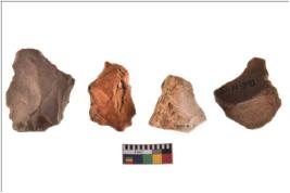 | Description / विवरण | Four worked utilised flakes. They are uneven with sharp edges. Most of them are tapering at one end. |