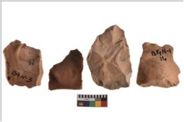 | Description / विवरण | Four worked utilised flakes. They are uneven with sharp edges. Most of them are tapering at one end. |