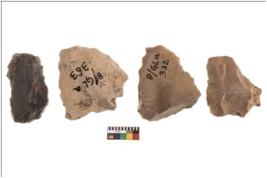 | Description / विवरण | Four worked flakes, some of them are irregular in shape whereas some are tapering at one end. |