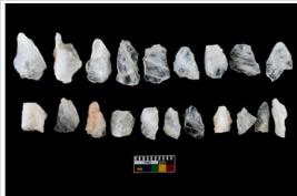 | Description / विवरण | There are n-20 of intact flake cores made up of Quartz. Some of them have bulge of percussion and some are flat flakes. |