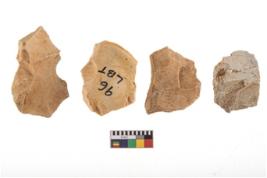 | Description / विवरण | Four flakes; most of them are tapering at one end with few having sharp edges. |