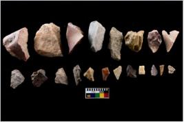 | Description / विवरण | The assemblage is made up of n 4 specimens of Mesolithic flakes and cores. Most of these are blade cores and have multiple platforms. |