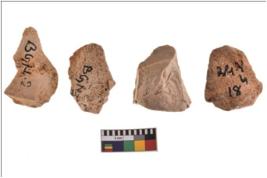 | Description / विवरण | Four worked utilised flakes. They are uneven with sharp edges. Most of them are tapering at one end. |
