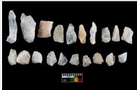 | Description / विवरण | There are n-20 of intact flake cores made up of Quartz. Some of them have bulge of percussion and some are flat flakes. |