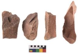 | Description / विवरण | A specimen of flake tool with prominent flaking marks. It made up of a short flakes with sides trimmed. It is rectangular in shaped. |