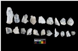 | Description / विवरण | There are n-20 of intact flake cores made up of Quartz. Some of them have bulge of percussion and some are flat flakes. |