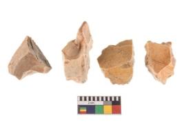 | Description / विवरण | Four flakes; most of them are tapering at one end with few having sharp edges. |
