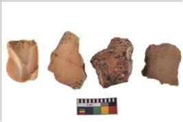 | Description / विवरण | Four worked utilised flakes. They are uneven with sharp edges. Most of them are tapering at one end. |