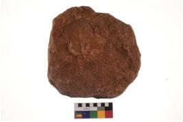 | Description / विवरण | A complete specimen of an oval shaped muller. It has battered surface along with curved ridges and oval section. |