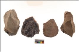 | Description / विवरण | Four worked flakes, some of them are irregular in shape whereas some are tapering at one end. |